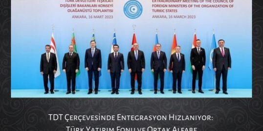 2025-03-04T07:35:07+00:00TDT Çerçevesinde Entegrasyon Hızlanıyor: Türk Yatırım Fonu ve Ortak Alfabe Türkiye, Azerbaycan, Kazakistan, Kırgızistan ve Özbekistan’ın üye; Türkmenistan, Macaristan ve KKTC’nin ise gözlemci üye statüsünde bulunduğu Türk Devletleri Teşkilatı (TDT), uluslararası arenada Türk Devletleri’nin tek blok olarak tek ama gür bir sesle politika oluşturmaları amacıyla kurulmuştur. Türk Devletleri arasında siyasi, ekonomik, kültürel ve askeri entegrasyonu amaçlayan TDT, 2021 yılında kurulmuş olup tarihi arka planını 1992 yılında kurulan Türk Dili Konuşan Ülkeler Zirvesi’nden almaktadır. Diasporadan gençlik çalışmalarına, turizmden ortak tarihe birçok alanda çalışması bulunan TDT, bugünlerde iki konu üzerine yoğunlaşmıştır. Bunlardan Türk IMF olarak da tarif edebileceğimiz Türk Yatırım Fonu’dur. Fonun kuruluşu, 11...